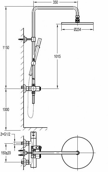 | Форма верхнего душа | круглая |