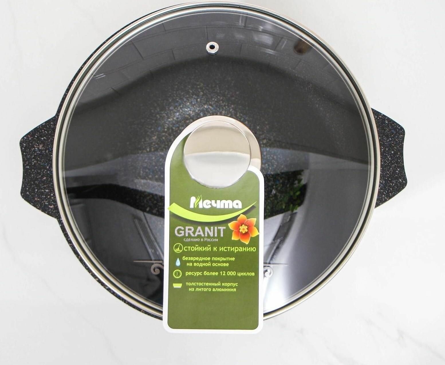 Казан «Гранит Stаr» 4 л стеклянная крышка антипригарное покрытие цвет чёрный