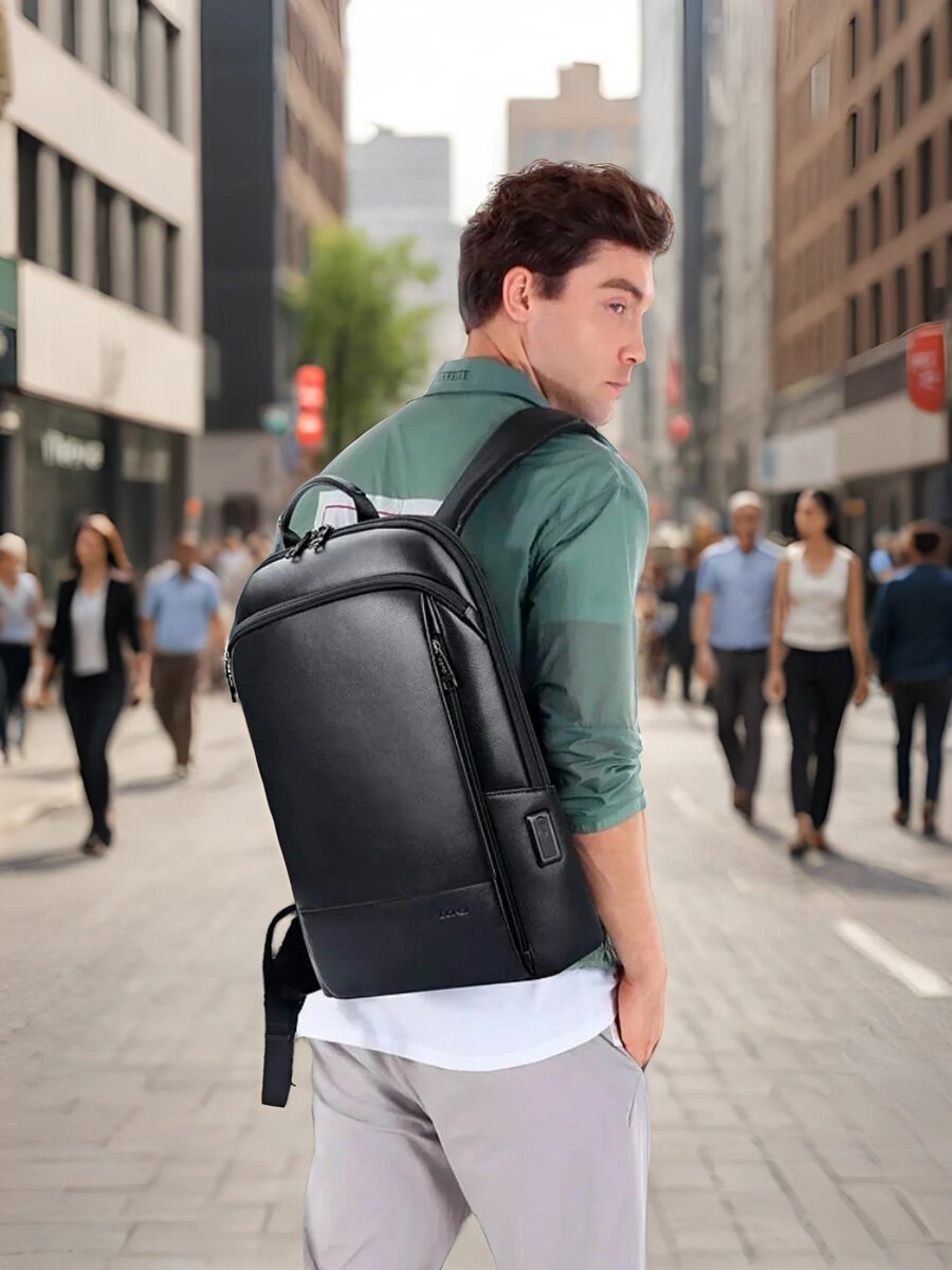 Рюкзак из натуральной кожи городской Bopai универсальный 15л, для ноутбука 15", с USB портом, влагостойкий, молодежный, черный