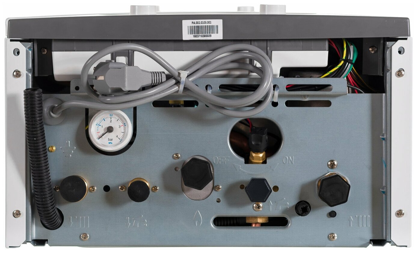 | Особенности | воздухоотводчик, встроенный расширительный бак, встроенный циркуляционный насос, манометр, предохранительный клапан, разъем для подключения внешнего управления, термометр |