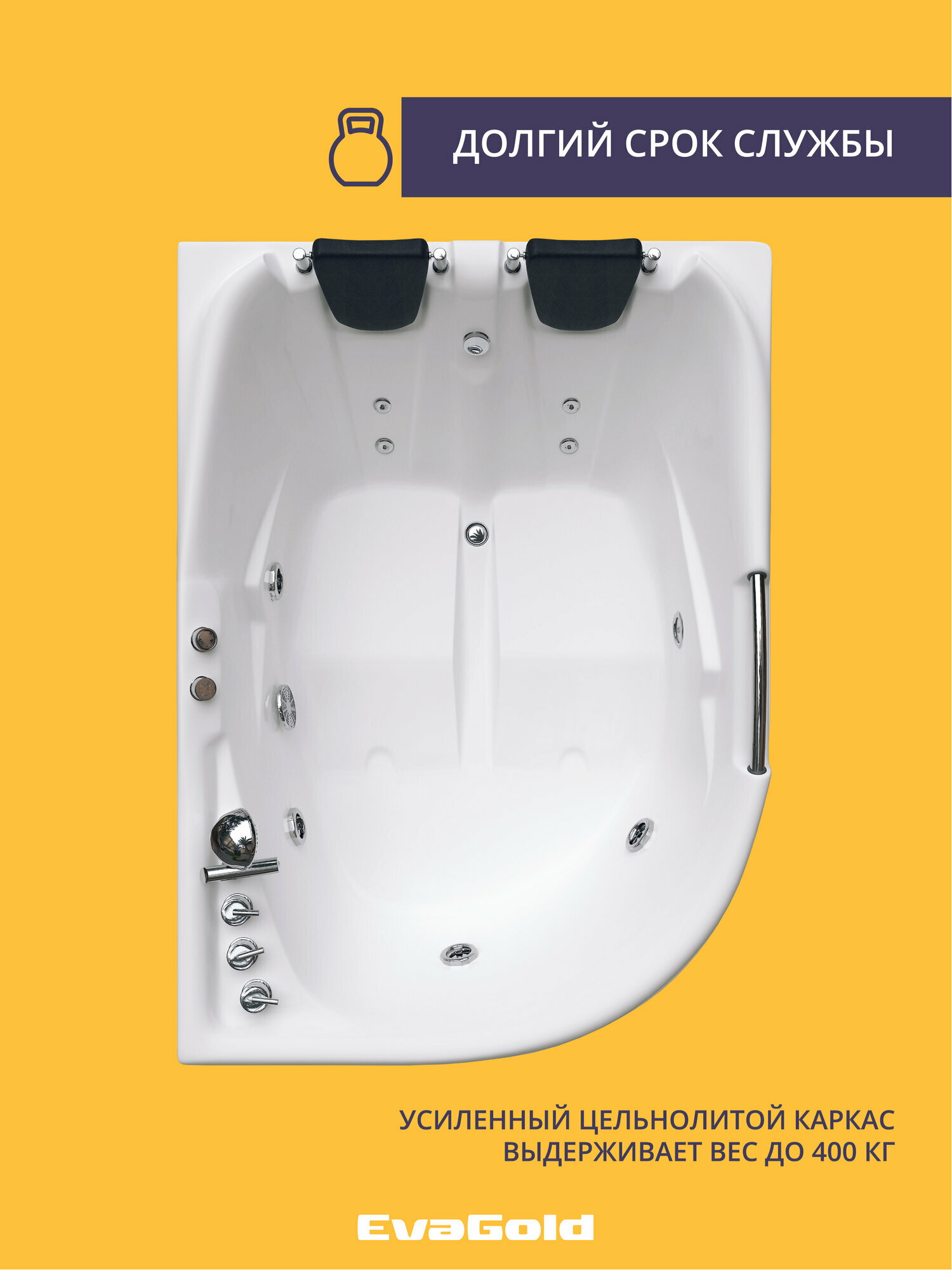 Гидромассажная ванна EvaGold правая 170х119х62, модель LP507.7 белый для ванной