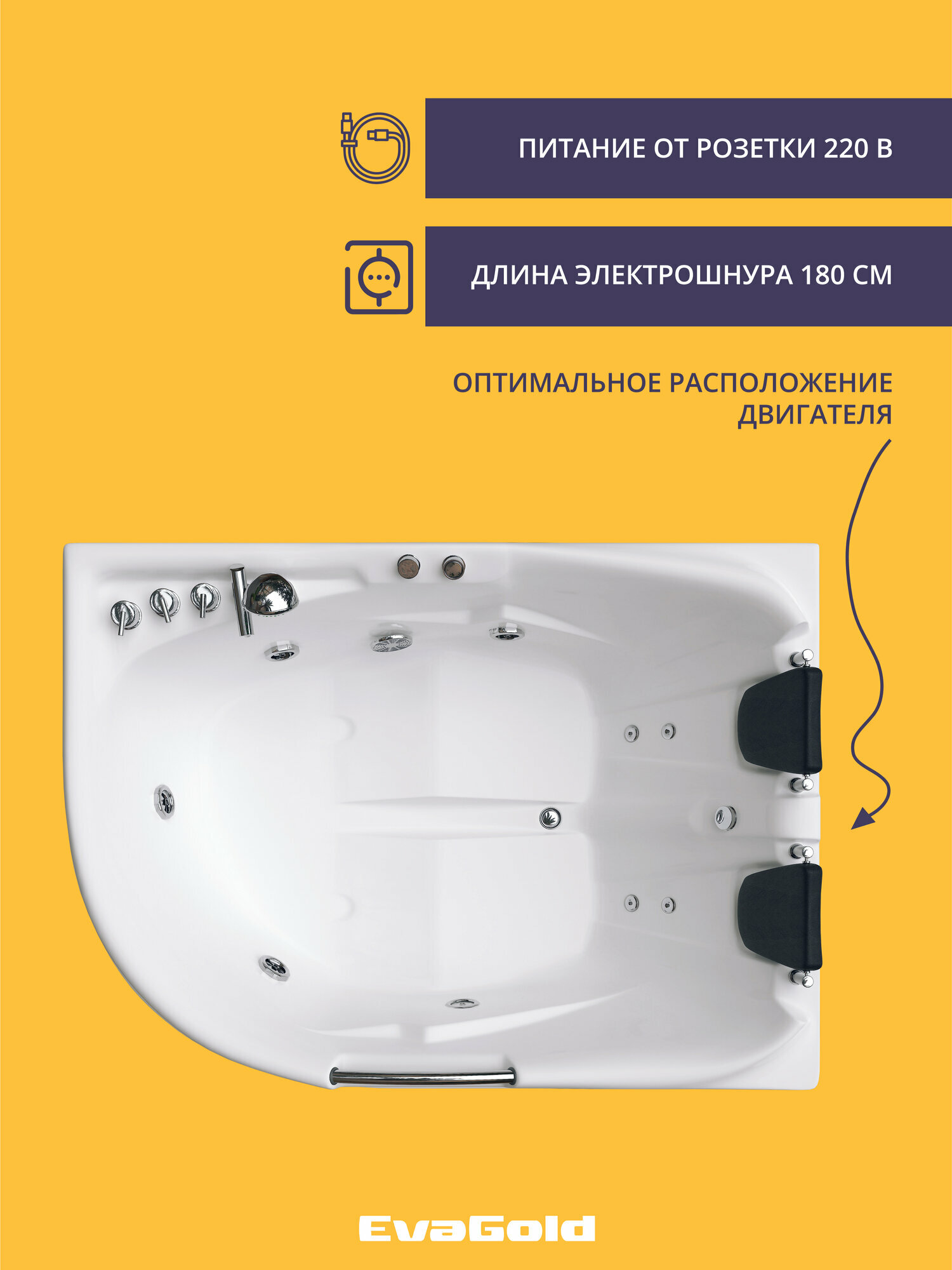 Гидромассажная ванна EvaGold OLB-807 R 120х170х65 белая с насосом и переливом