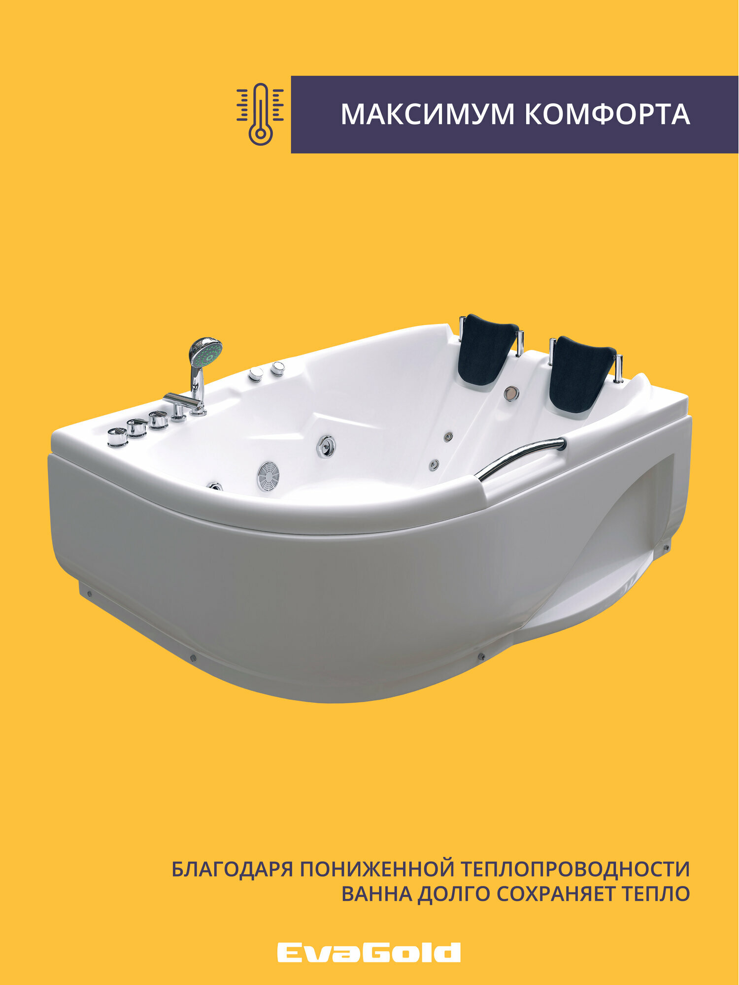 Купить Ванна гидромассажная EvaGold правая 170х119х62, набор ND507.1 белый для ванной с двумя ковриками, бежевый