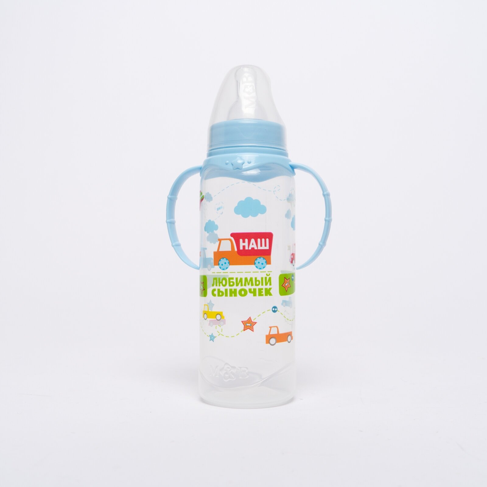 Mum&Baby Бутылочка для кормления «Сыночек» детская классическая, с ручками, 250 мл, от 0 мес., цвет голубой