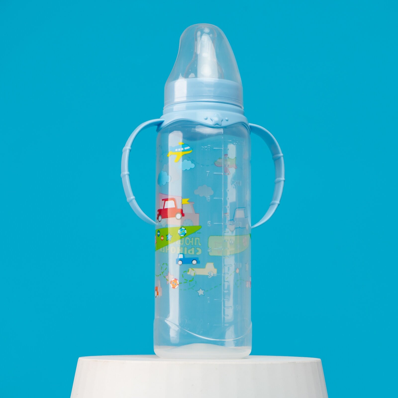 Бутылочка для кормления «Сыночек» детская классическая, с ручками, 250 мл, от 0 мес., цвет голубой