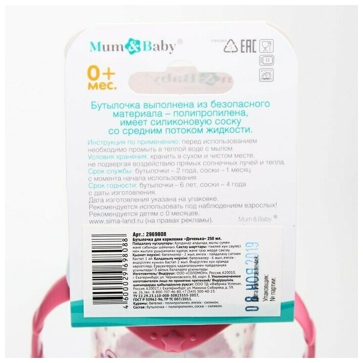 | Особенности | Детская бутылочка изготовлена в России из сырья отечественного производства |