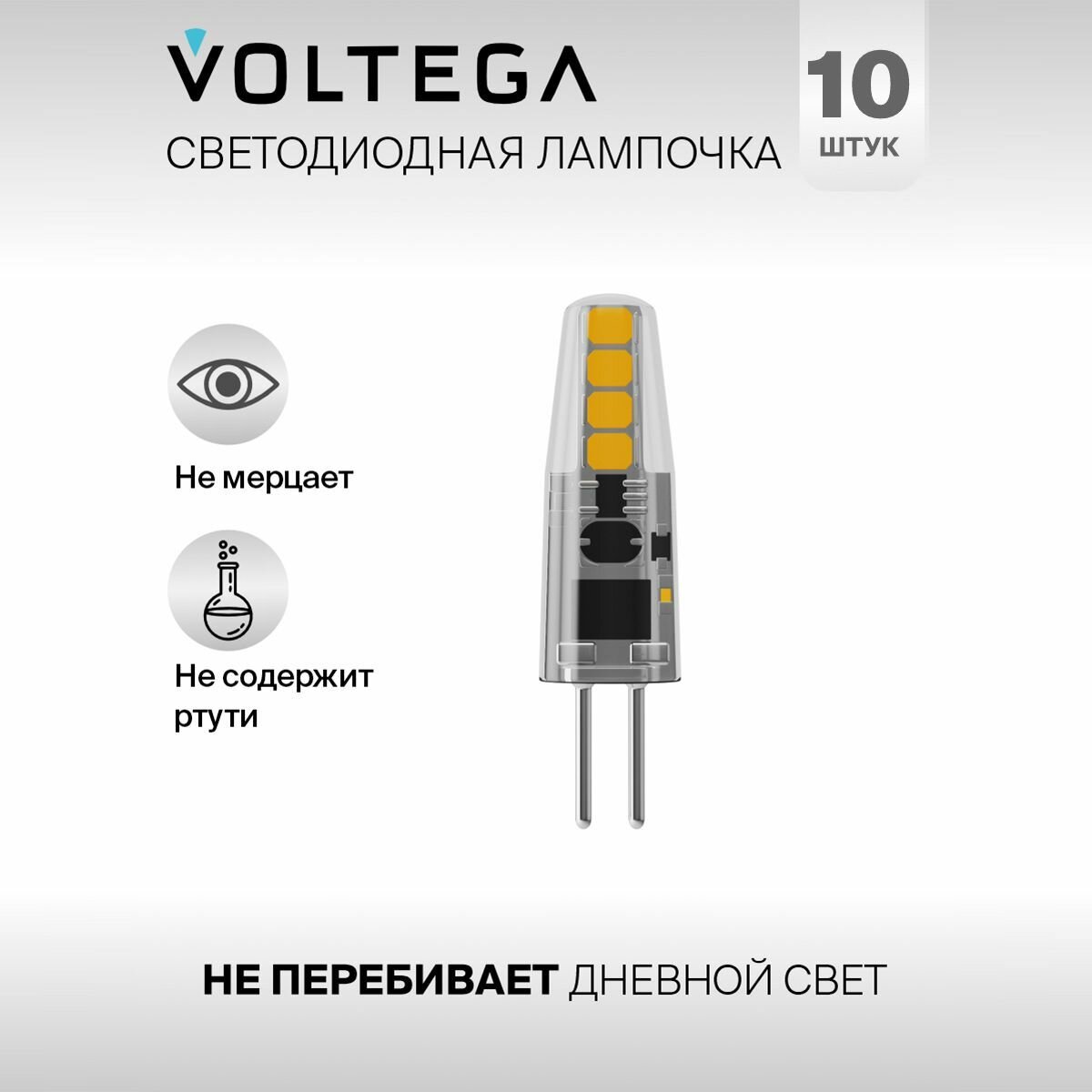 Лампочка светодиодная G4 форма капсульная 2W теплый свет Voltega Simple Capsule 2800K упаковка 10 штук