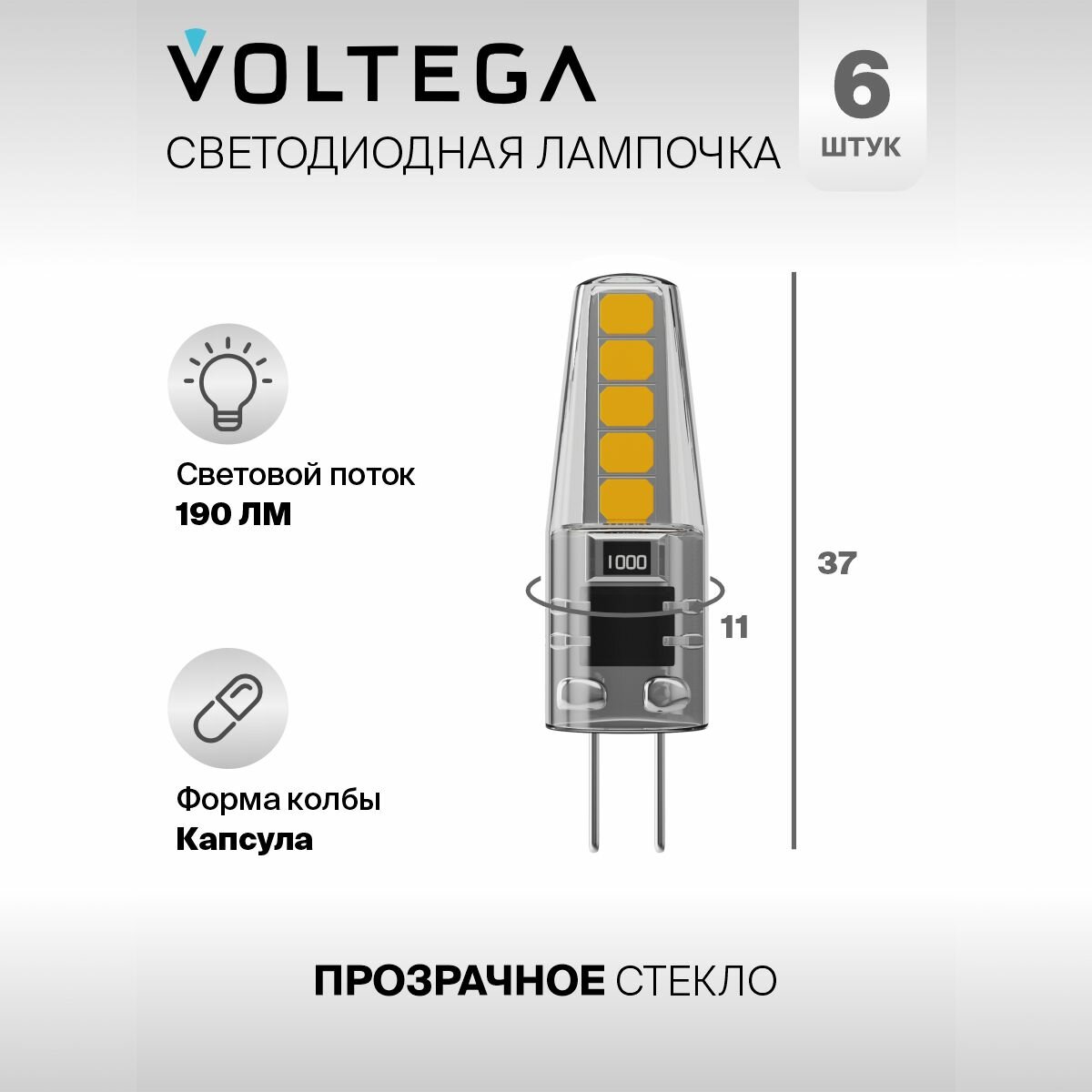 Лампочка светодиодная G4 форма капсула 2W нейтральный свет Voltega Simple Capsule 4000K упаковка 6 штук