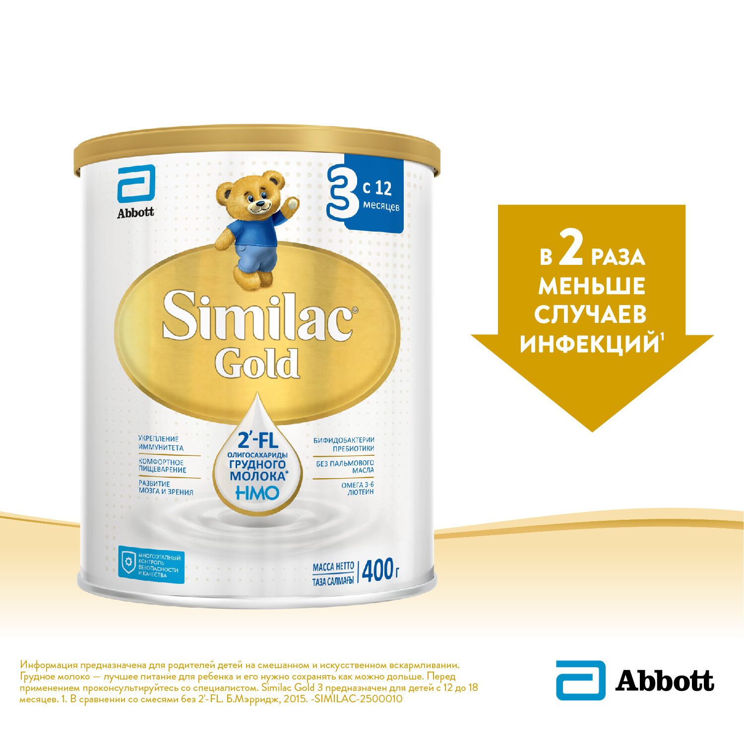 Купить Детское молочко Similac Gold 3 с 2'-FL для иммунитета и комфортного пищеварения, 12+ мес, 400 г