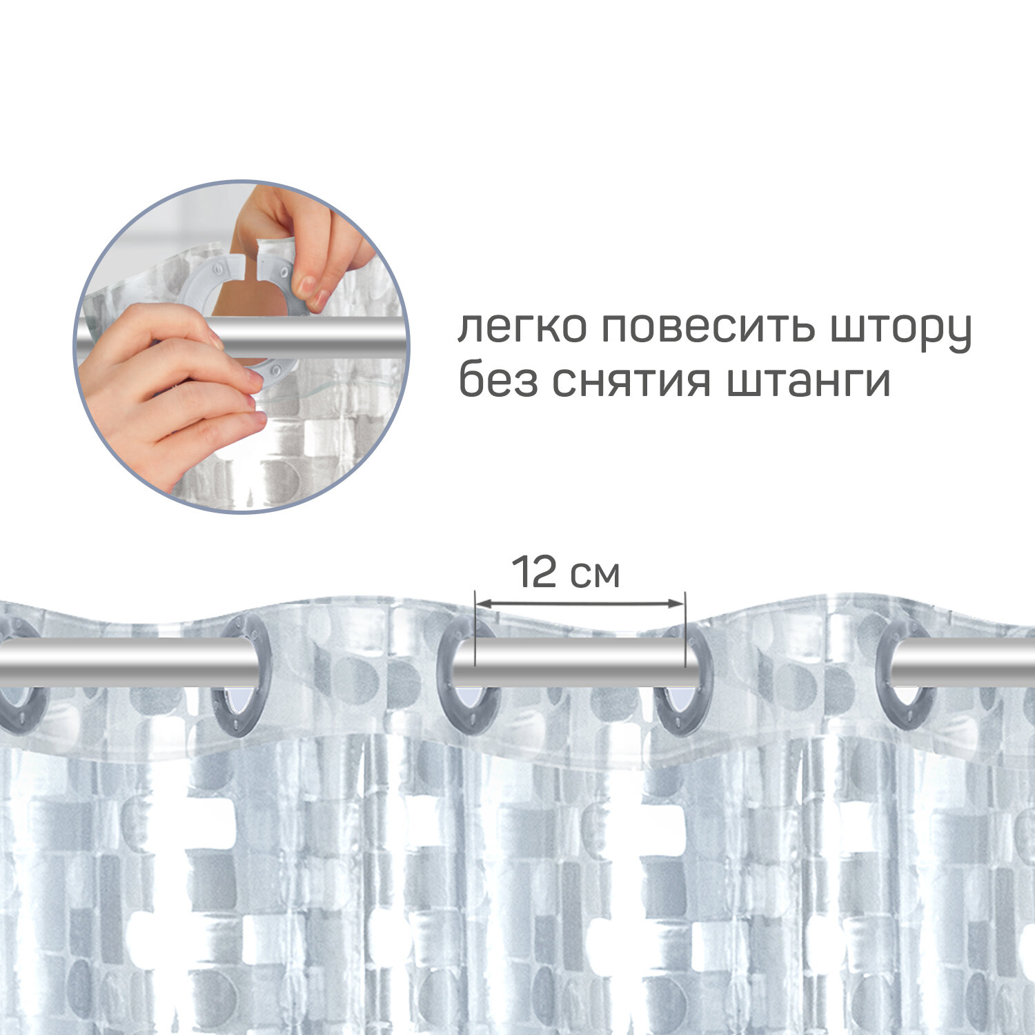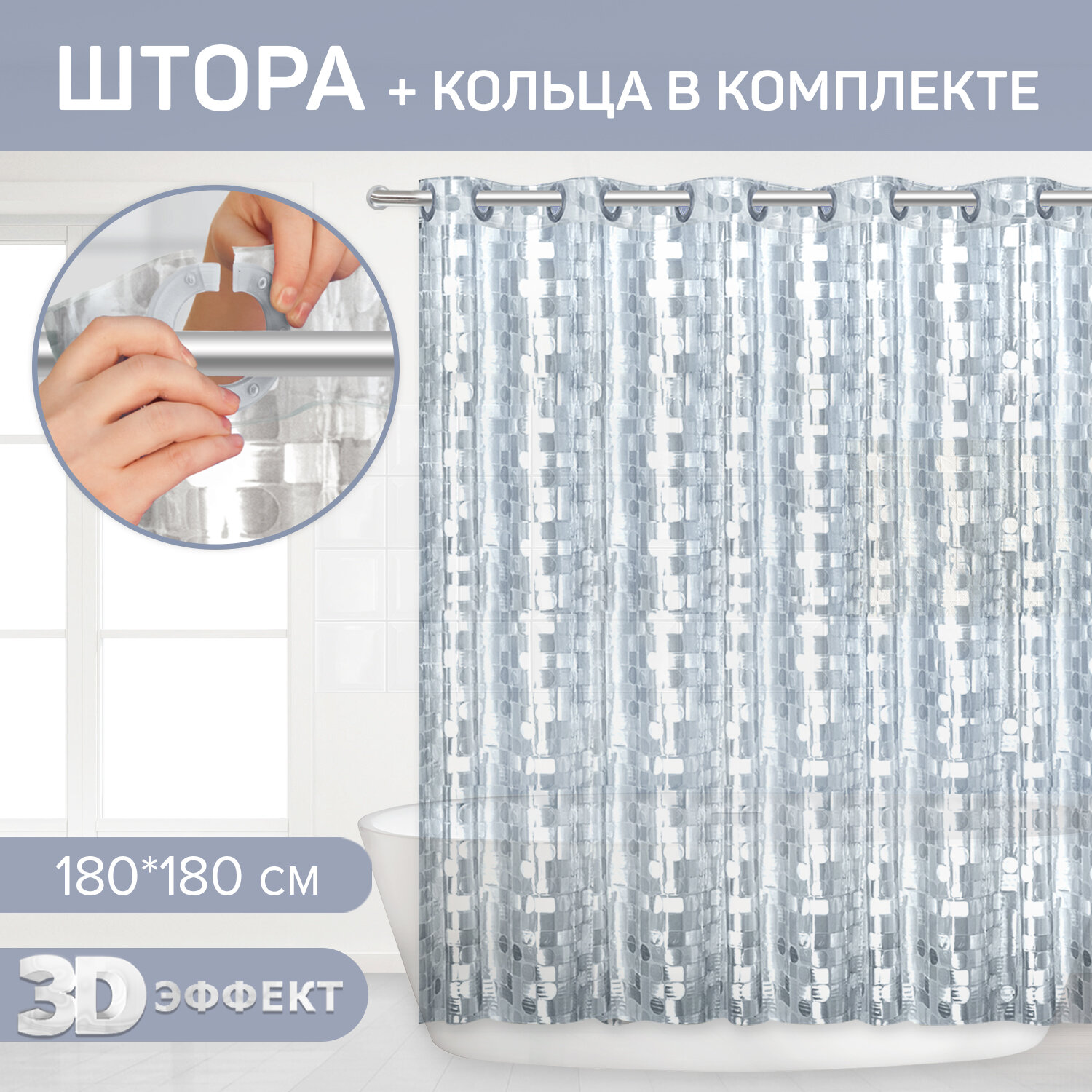 Штора для ванной с люверсами 120 х 180, в комплекте 8 колец