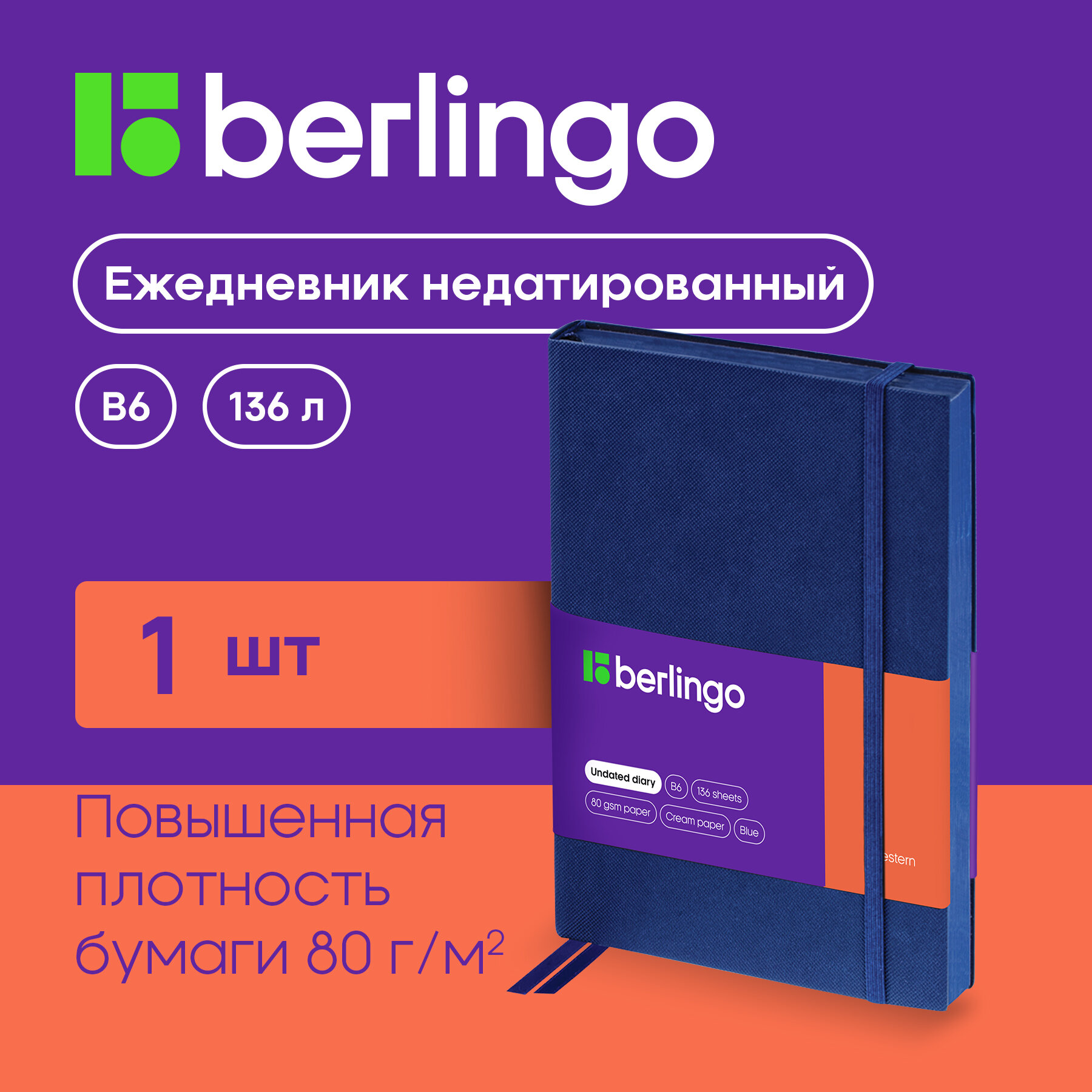Ежедневник недатированный В6 Berlingo Western (136 листов) обложка кожзам, с резинкой, синяя, цв. срез (UD0_85602), 20шт.