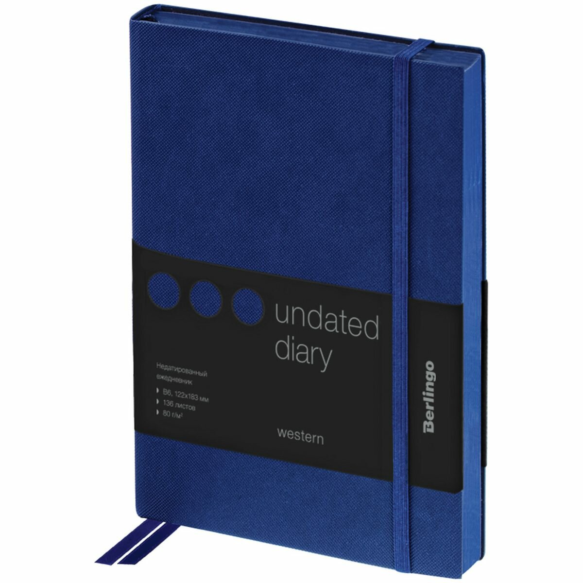 Ежедневник недатированный В6 Berlingo Western (136 листов) обложка кожзам, с резинкой, синяя, цв.срез (UD0_85602)