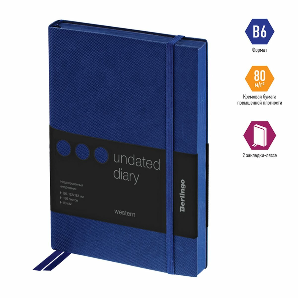 Ежедневник недатированный Berlingo B6, 136 листов, кожзам, "Western", с резинкой, синий (UD0_85602)