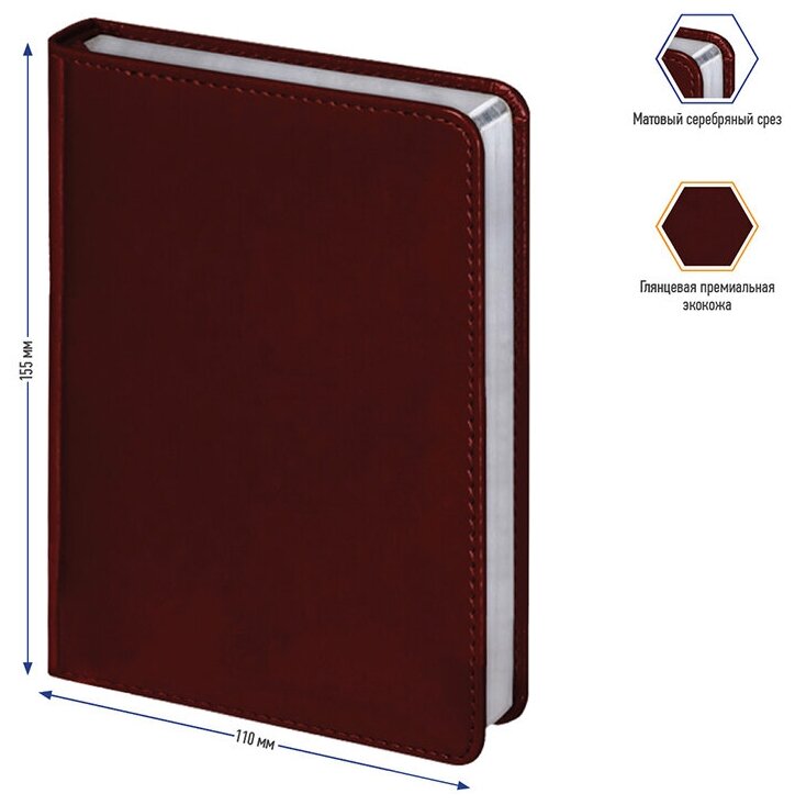 Ежедневник недатированный А6, 160 листов, Berlingo "Silver Pristine". Блокнот/ планер/ записная книжка в линейку, под кожу, серебряный срез, коричневый, в подарок