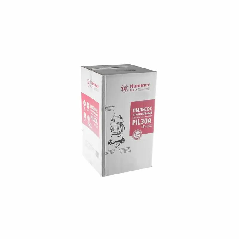 Пылесос строительный HAMMER PIL30A, 1400 Вт, бак 30 л, с розеткой для электроинструмента, шланг 3 м, диаметр шланга 32мм