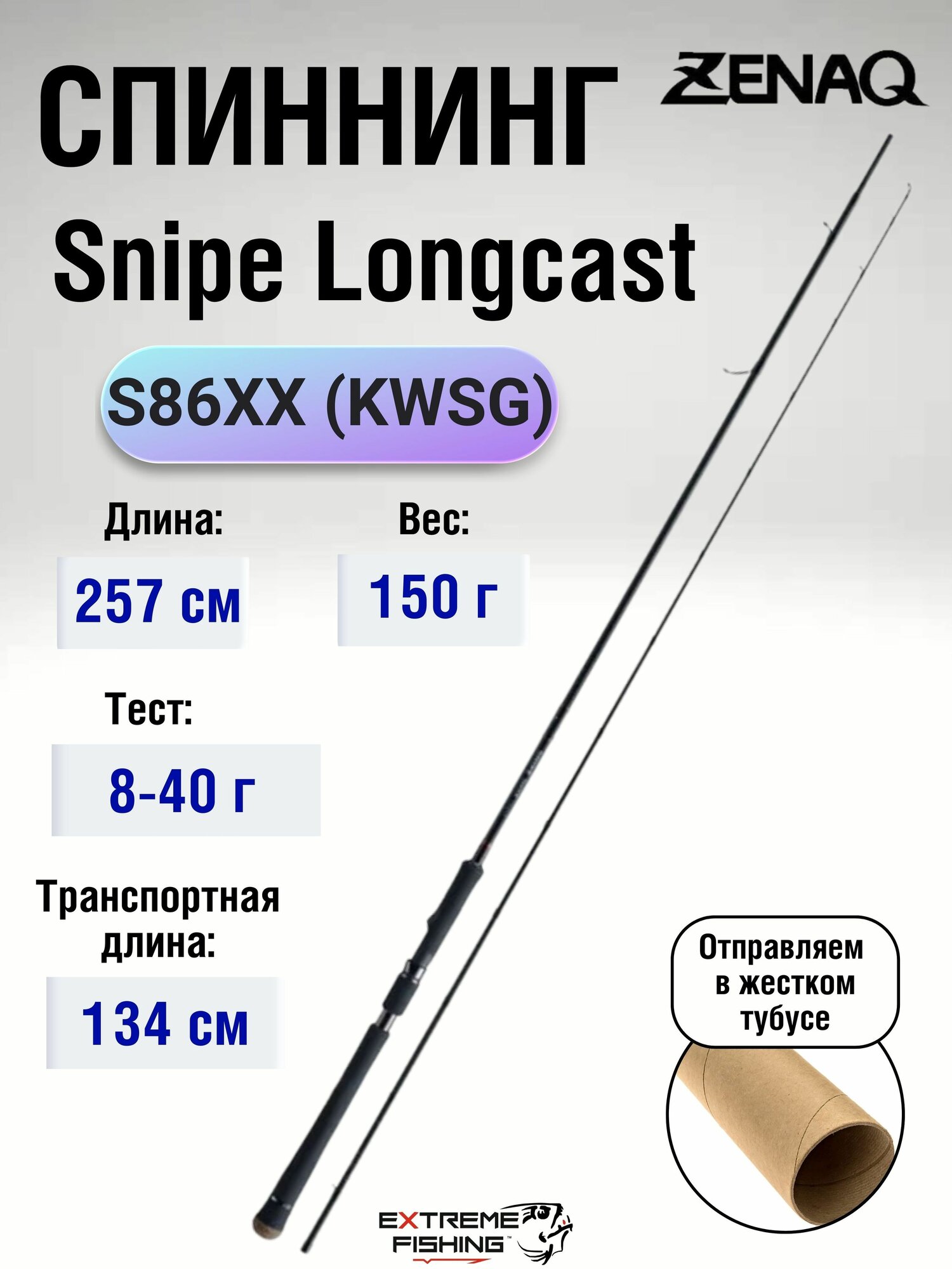 Спиннинг Zenaq Snipe Longcast S86XX (KWSG), 2,57м 8-40г, 150г интересное: