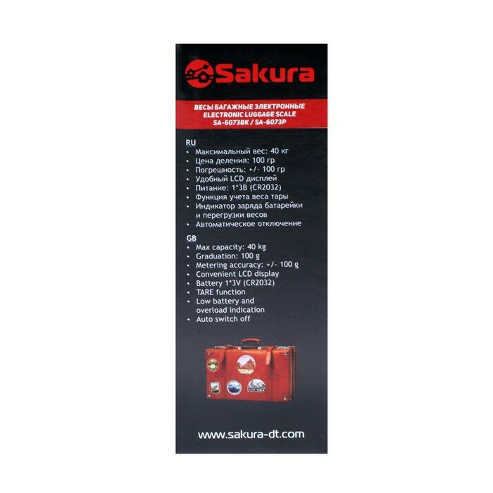 SAKURA Весы багажные Sakura SA-6073P, электронные, до 40 кг, фиолетовые интересное: