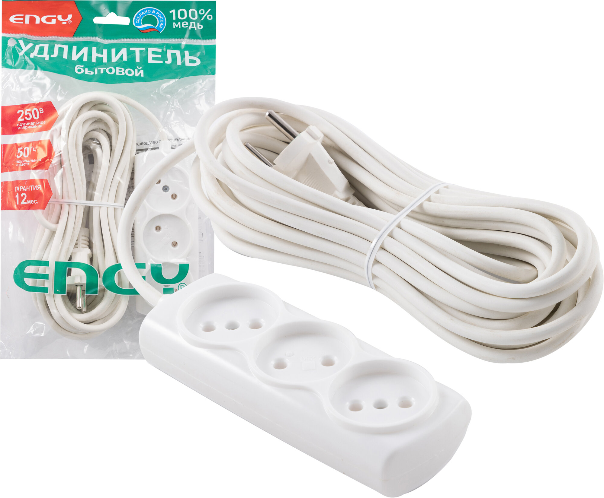 Купить Удлинитель сетевой электрический Engy "Премиум", 10 метров, 3 розетки, белый