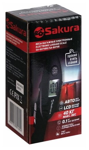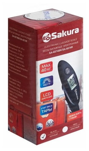 SAKURA Весы багажные Sakura SA-6074R, электронные, до 40 кг, красные
