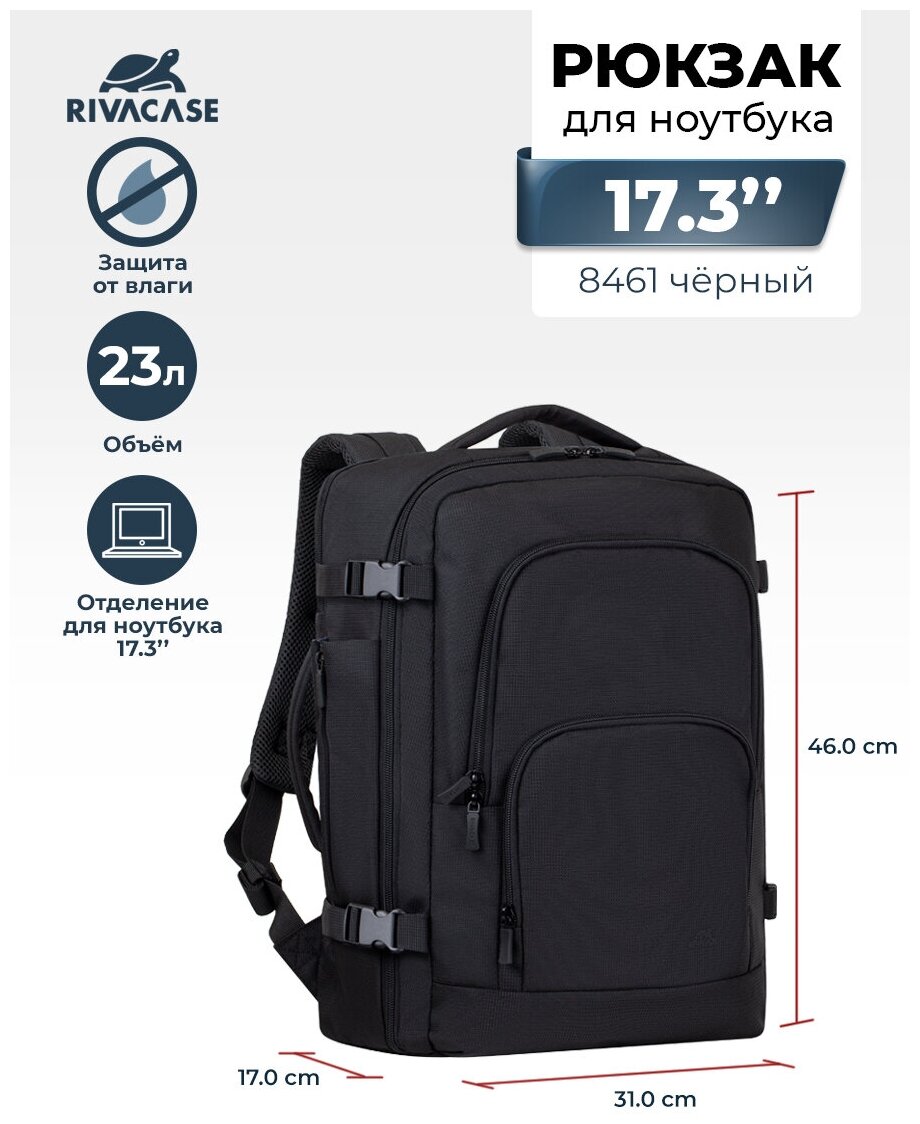 Рюкзак для ноутбука Rivacase 8461 black 17.3”, водоотталкивающая ткань интересное: