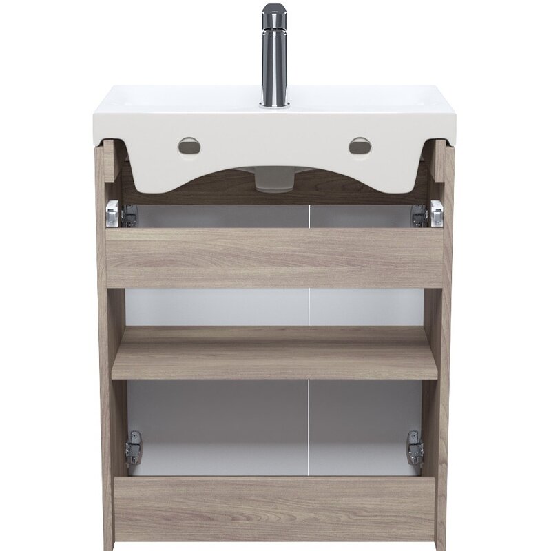 Тумба с умывальником напольная с дверцами 60 см белая/под дерево Zodiac IDDIS ZOD6ADFi95K