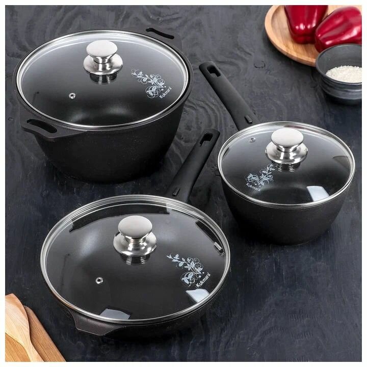Набор кухонной посуды Традиция 1, антипригарное покрытие, крышка, цвет чёрный KUKMARA 4206791 .