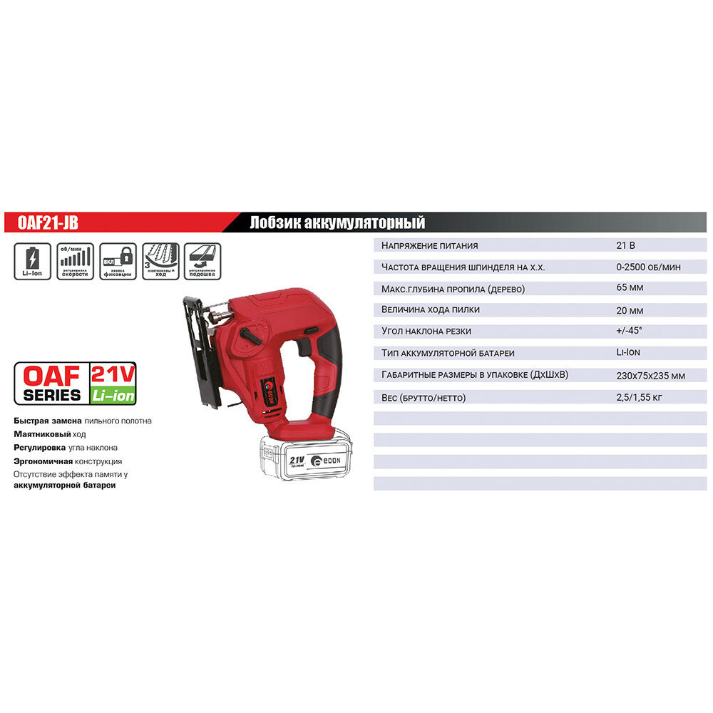 Лобзик аккумуляторный Edon OAF-21JB