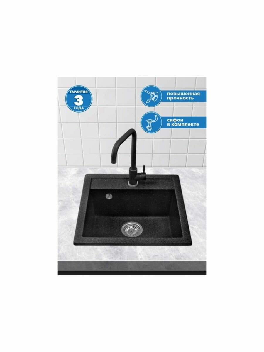 Мойка для кухни каменная AV ENGINEERING Unit 55х50, с сифоном (AVE550500BKA)