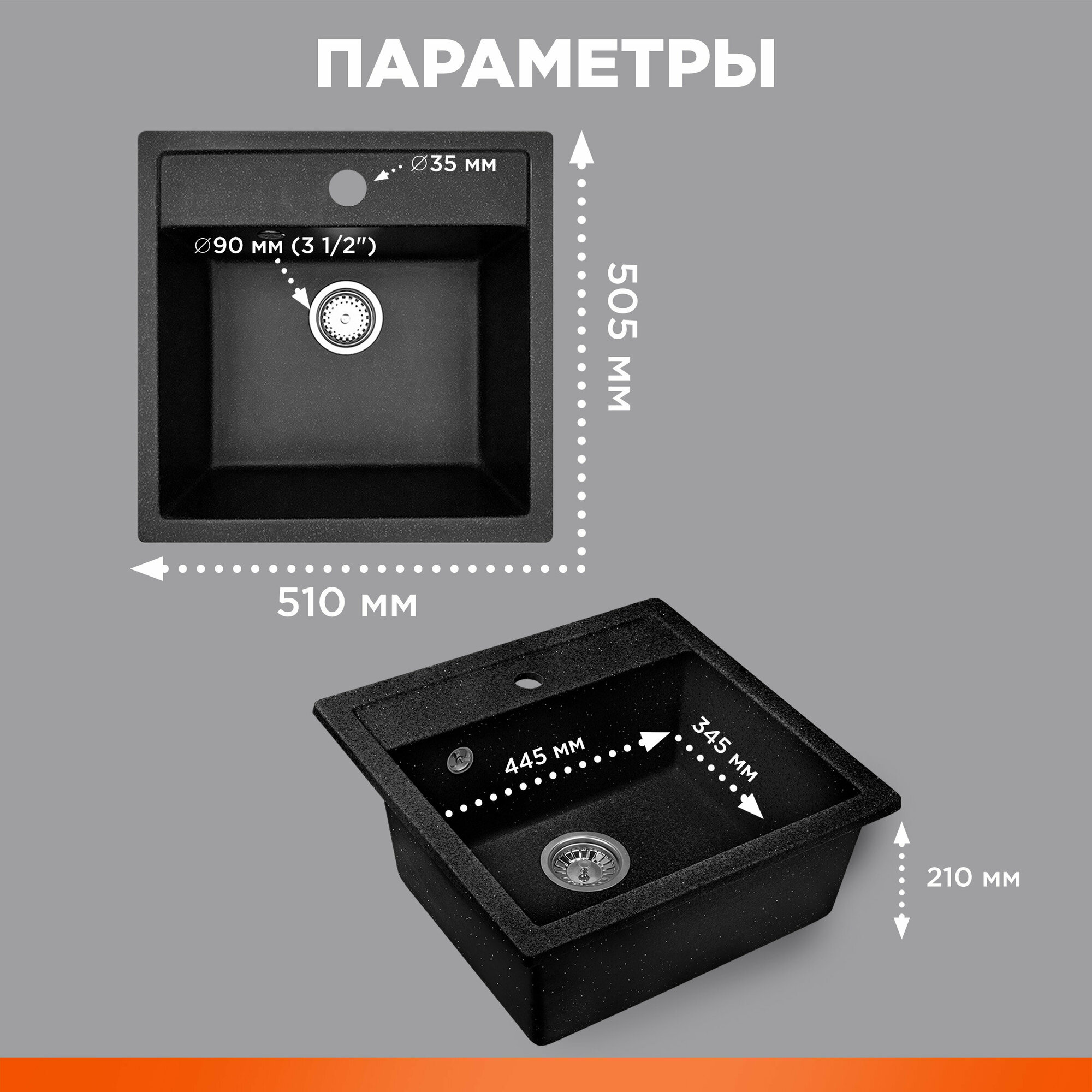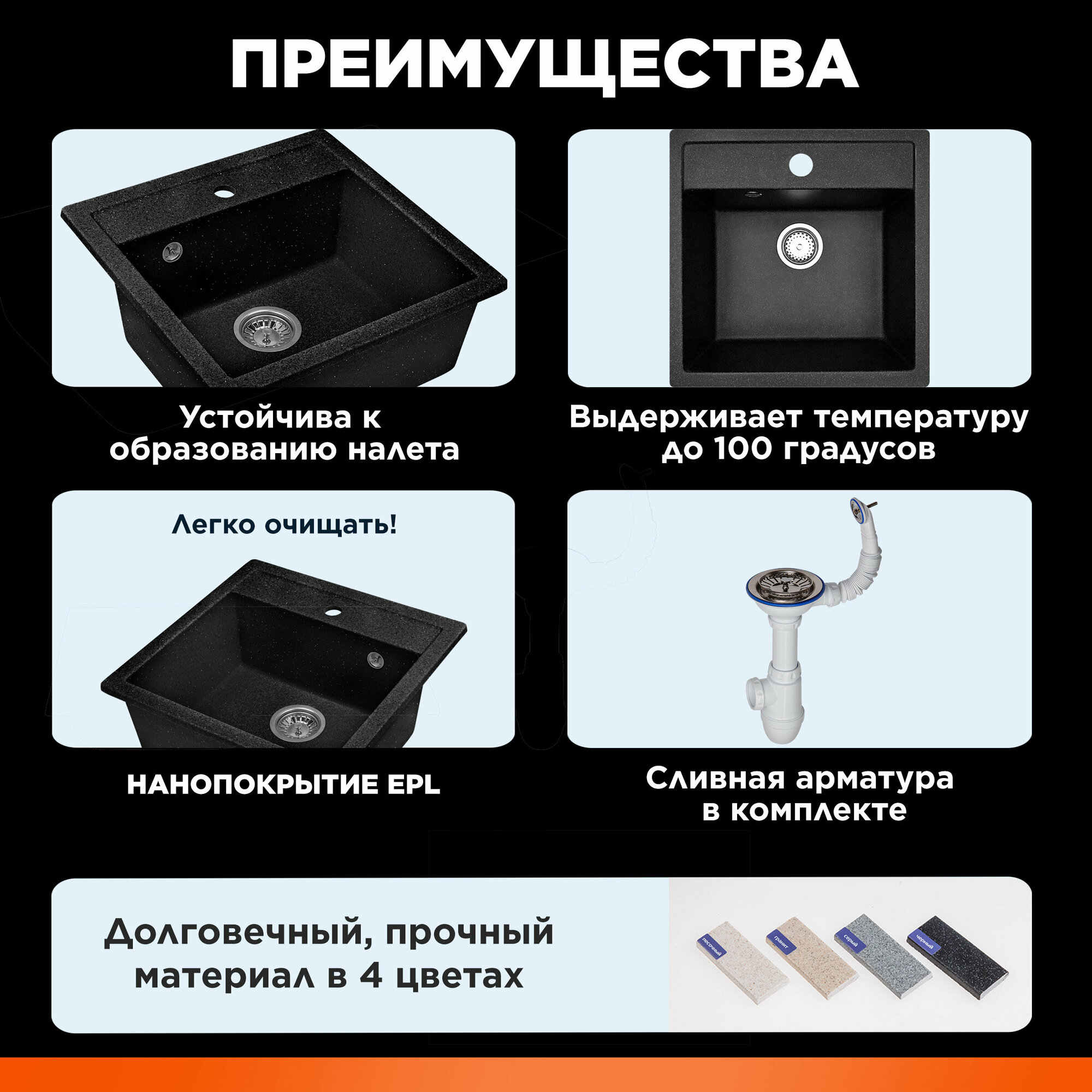 Мойка кухонная из искусственного камня GOLD черный 505х505 mm, AV Engineering (AV510000GBKA)