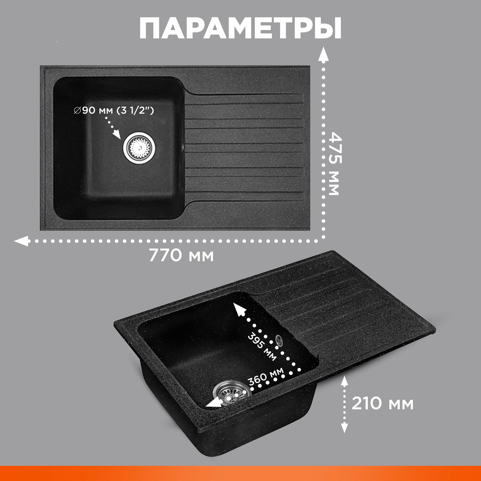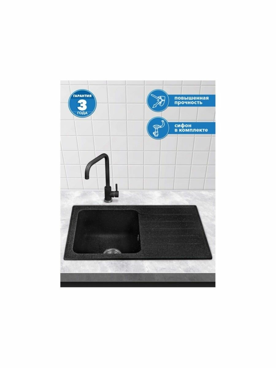Мойка для кухни каменная AV ENGINEERING Benefit 73х47 см, с сифоном (AVE730470BKA)
