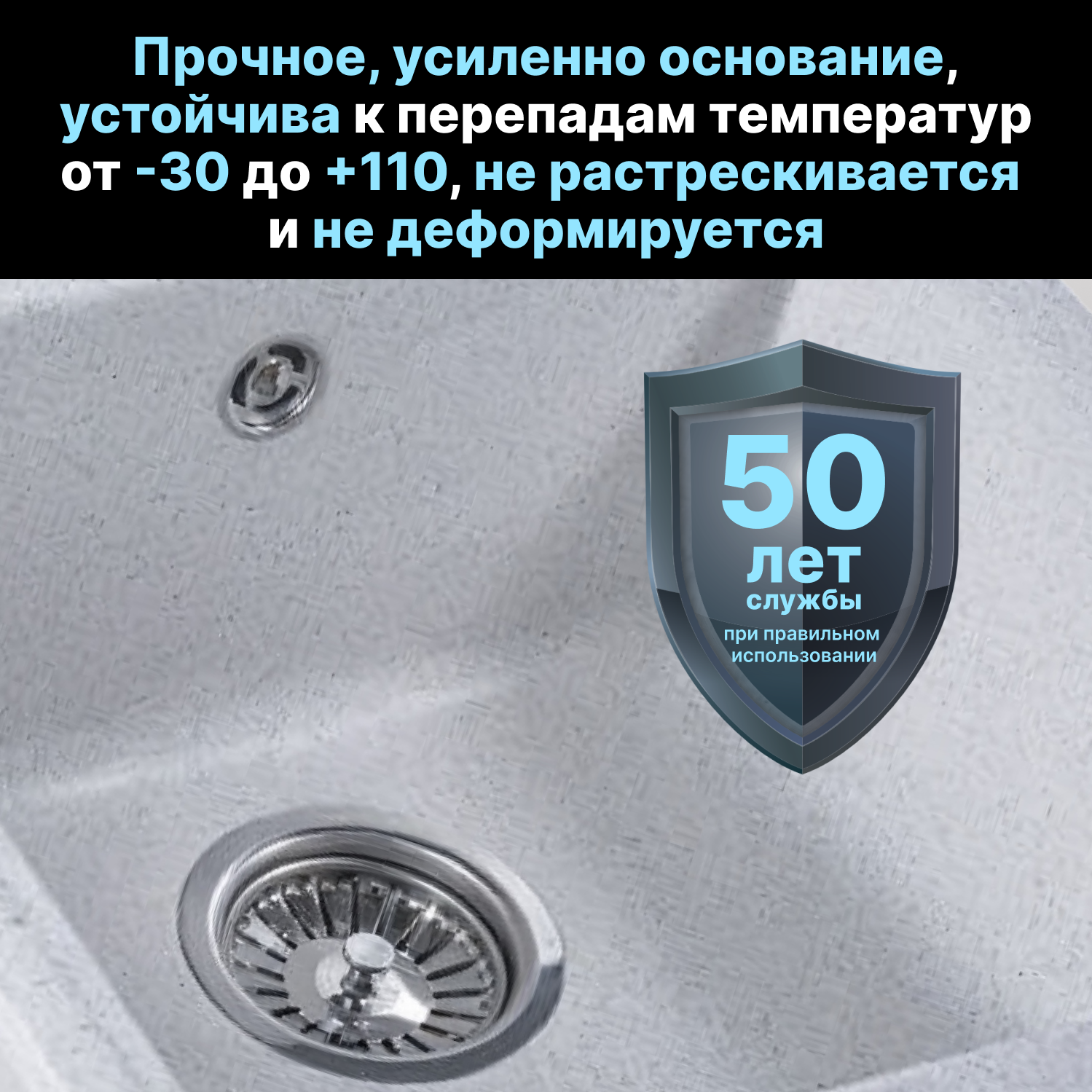СохранитьМойка для кухни из искусственного камня MISTA серый 615х440 мм, AV Engineering интересное: