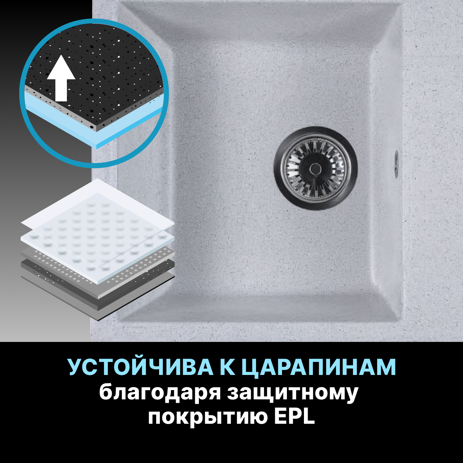 Мойка для кухни из искусственного камня UNIT серый 550х500 мм, AV Engineering