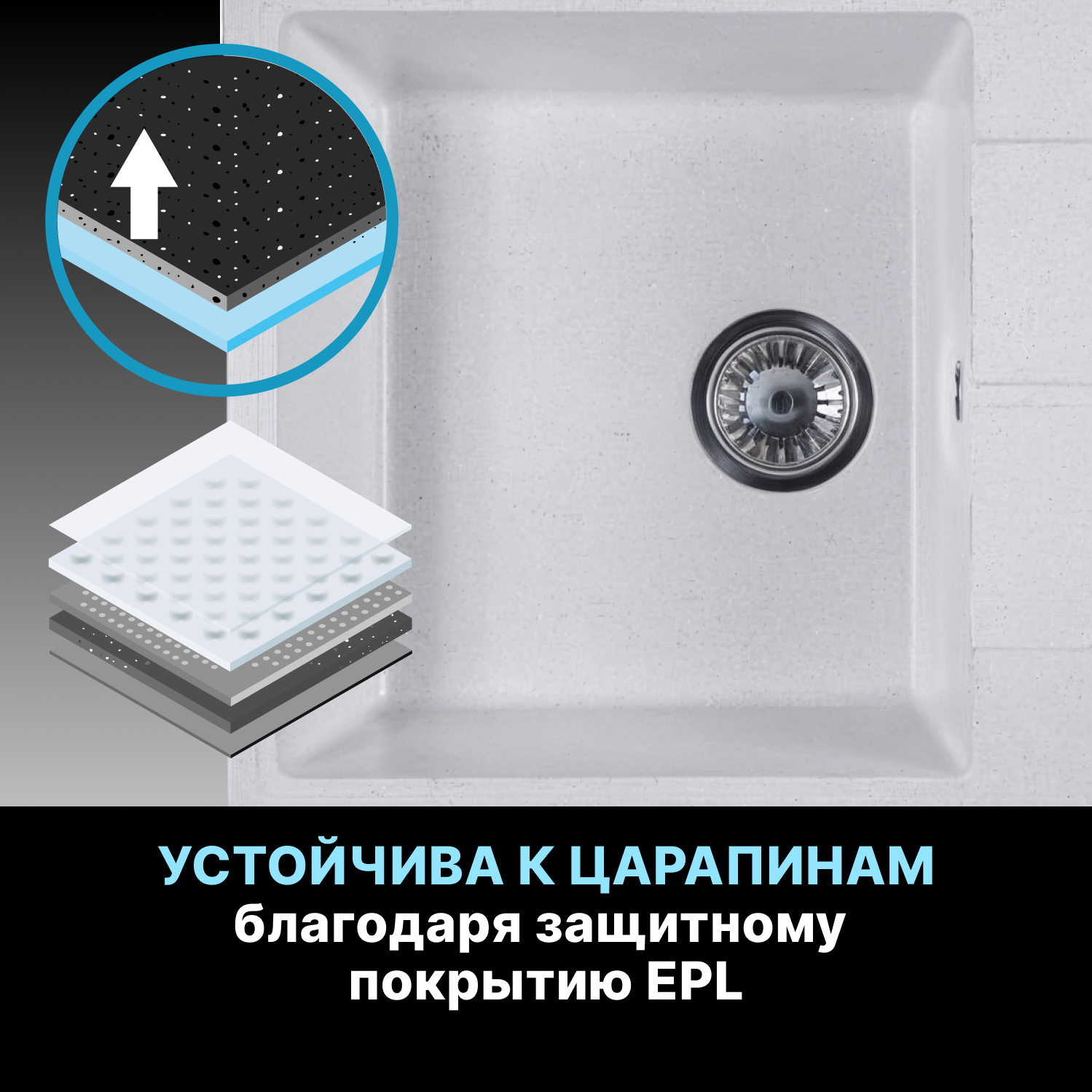 Мойка для кухни из искусственного камня UNIT серебро 550х500 мм, AV Engineering