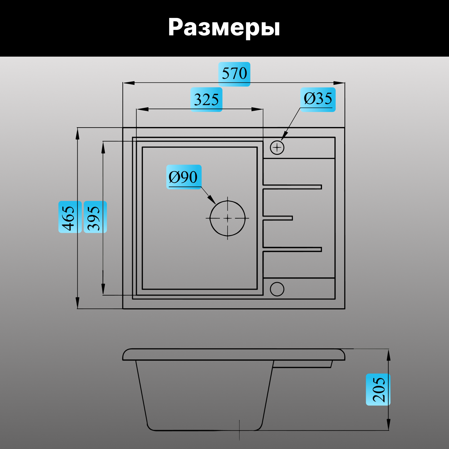 Мойка кухонная из искусственного камня RIO серый, 570х450 mm, AV Engineering (AV580450RGRA)