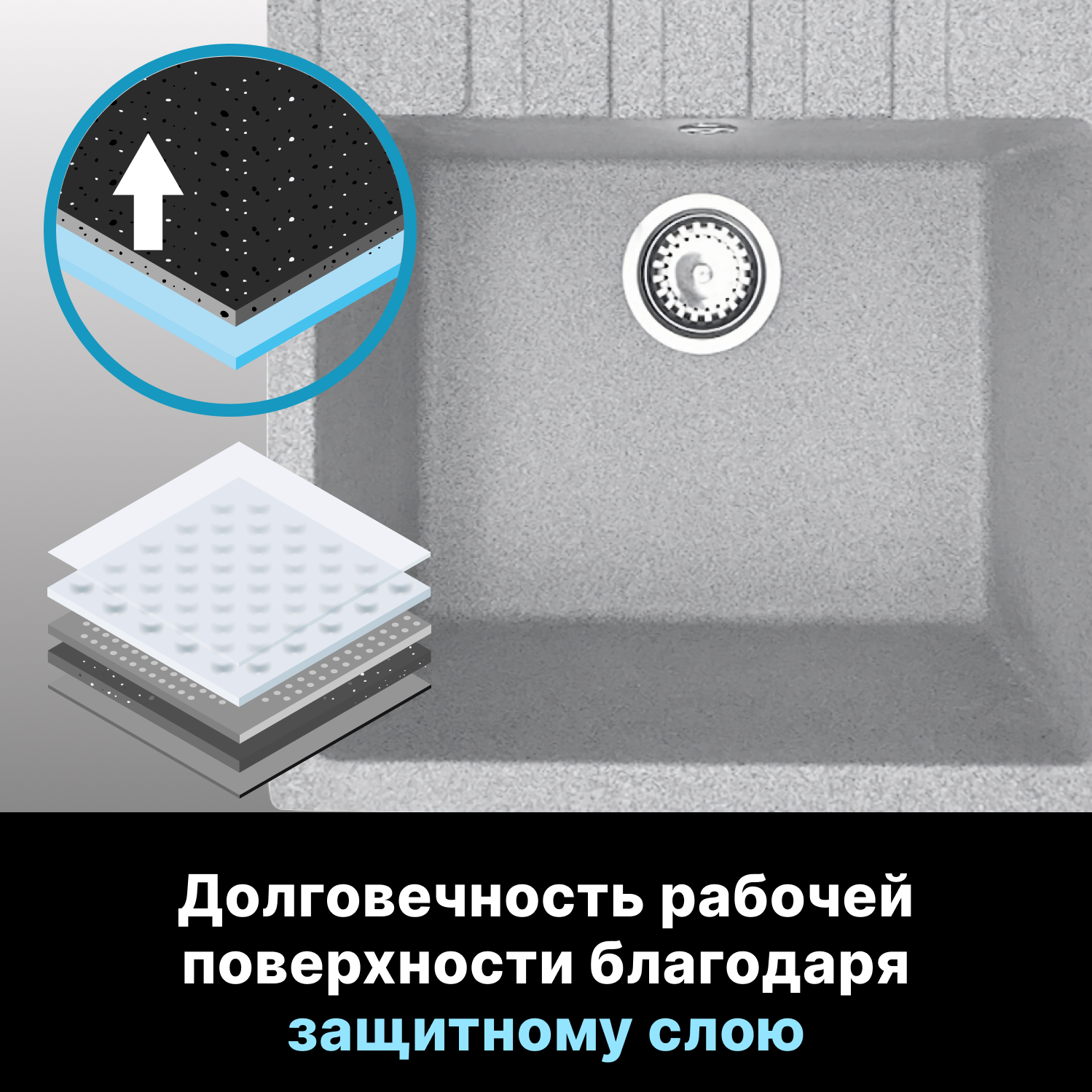Мойка для кухни из искусственного камня UNIT серый 550х500 мм, AV Engineering