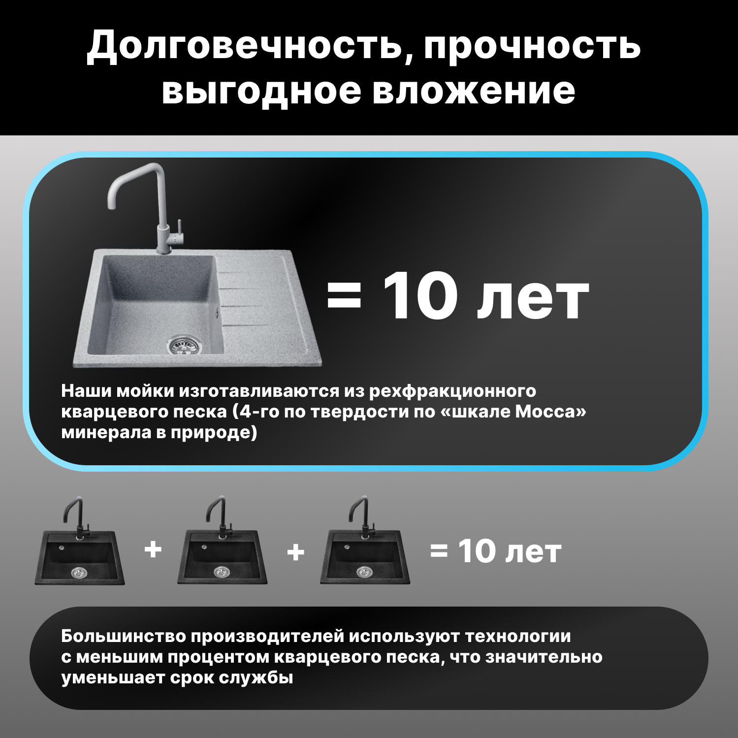 Мойка для кухни из искусственного камня BENEFIT серебро 730х470 мм, AV Engineering