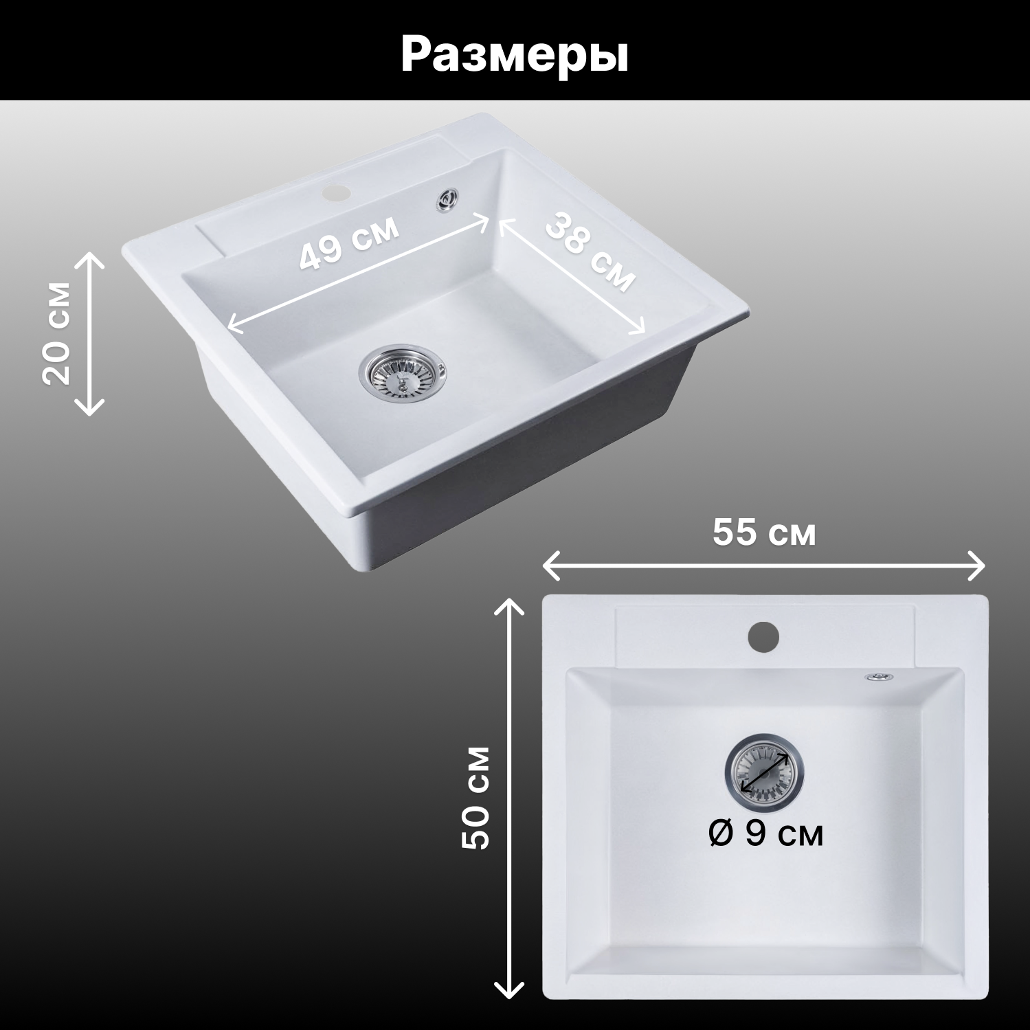 Мойка для кухни из искусственного камня AV ENGINEERING Unit 550х500 мм белый (AVE550500WTA)
