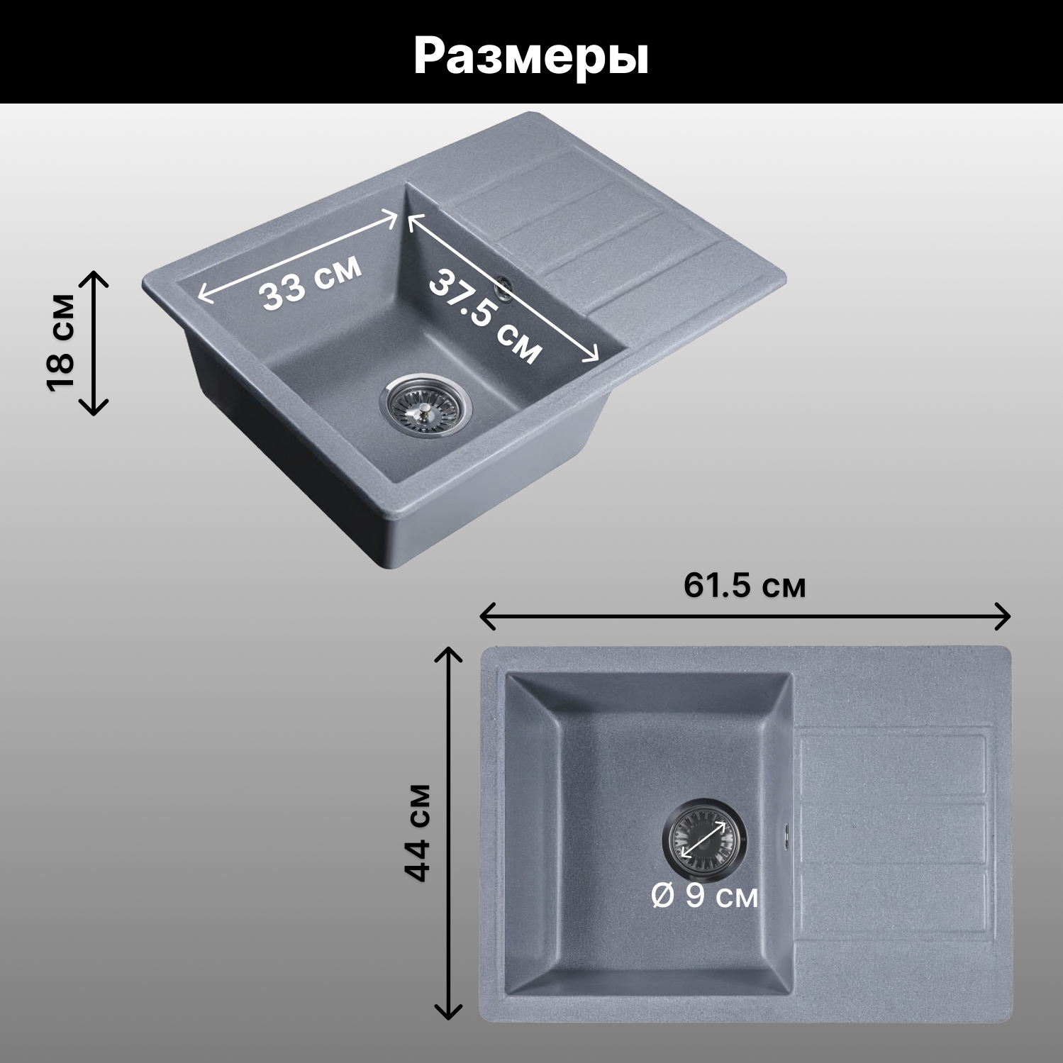 Мойка для кухни из искусственного камня MISTA серый 615х440 мм, AV Engineering