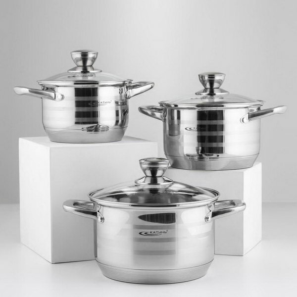 Набор кастрюль Элис, 3 предмета: 1,8 л, 2,5 л, 3,5 л Катунь 5309395 .