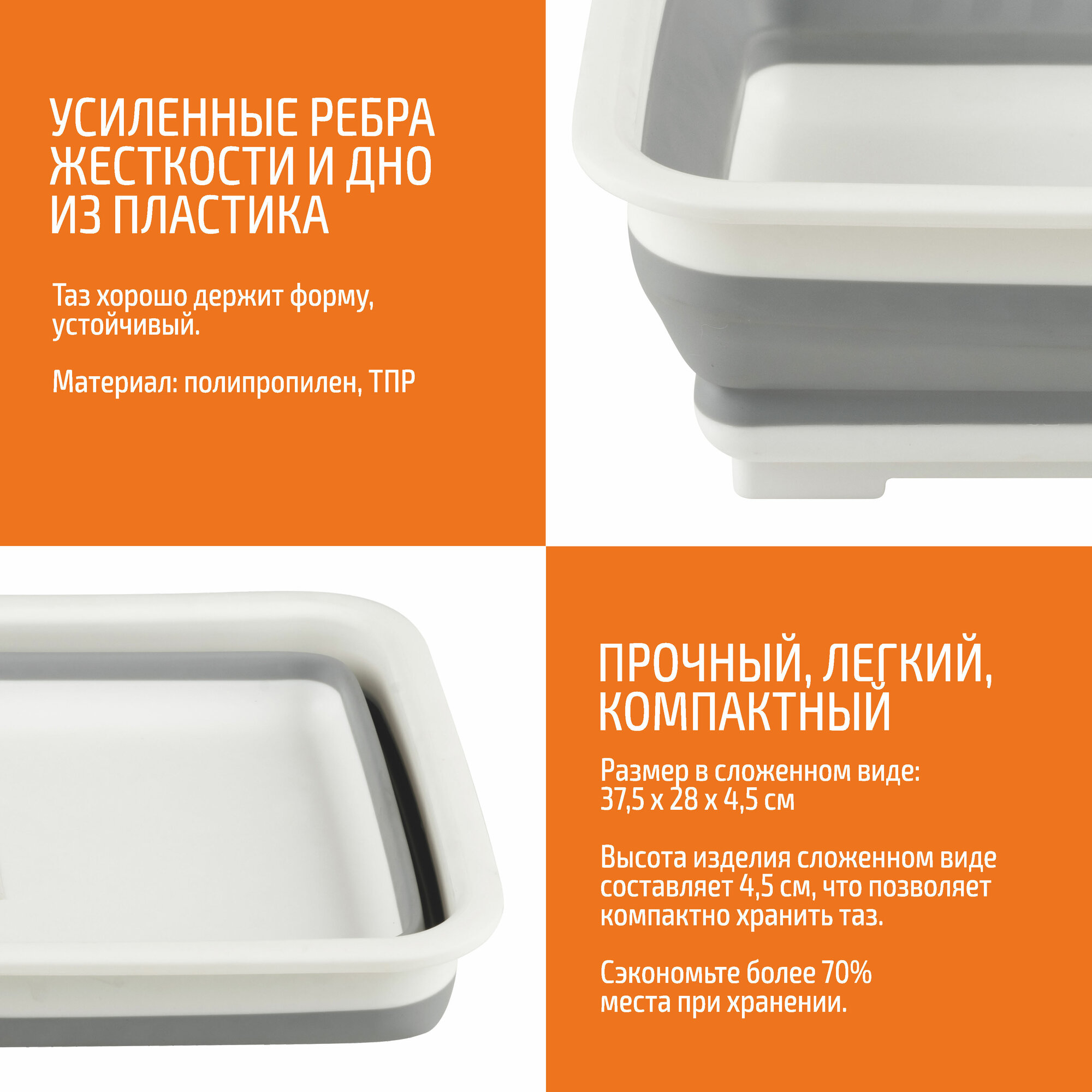 Таз Рыжий кот складной прямоугольный RFB-8/003920 8 л 11.5 см светло-серый 0.48 кг 37.5 см 8 л 28 см