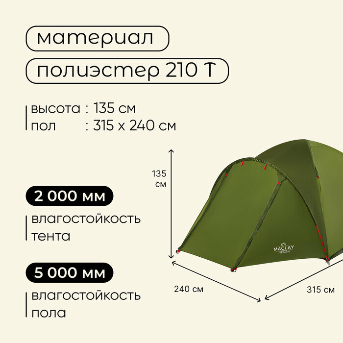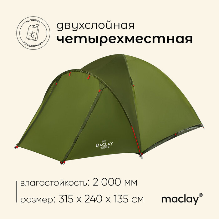 Maclay Палатка туристическая VERAG 4, размер 315 х 240 х 135 см, 4-местная, двухслойная