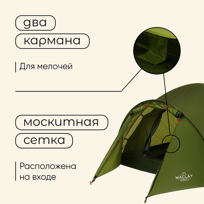 Палатка туристическая, трекинговая maclay VERAG 4, 4-местная, с тамбуром интересное: