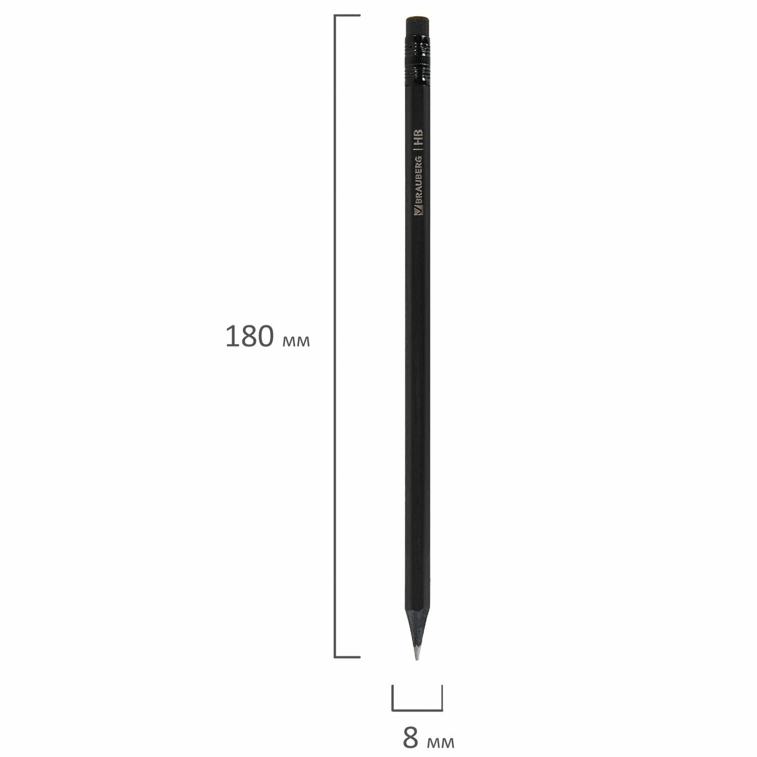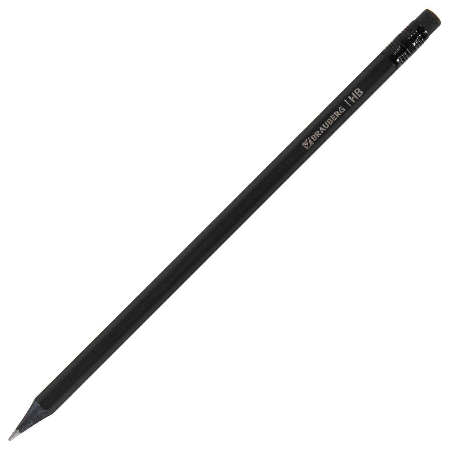 Карандаш чернографитный BRAUBERG Black Jack, 6 штук, НВ, черный, дерево, с ластиком, заточенные