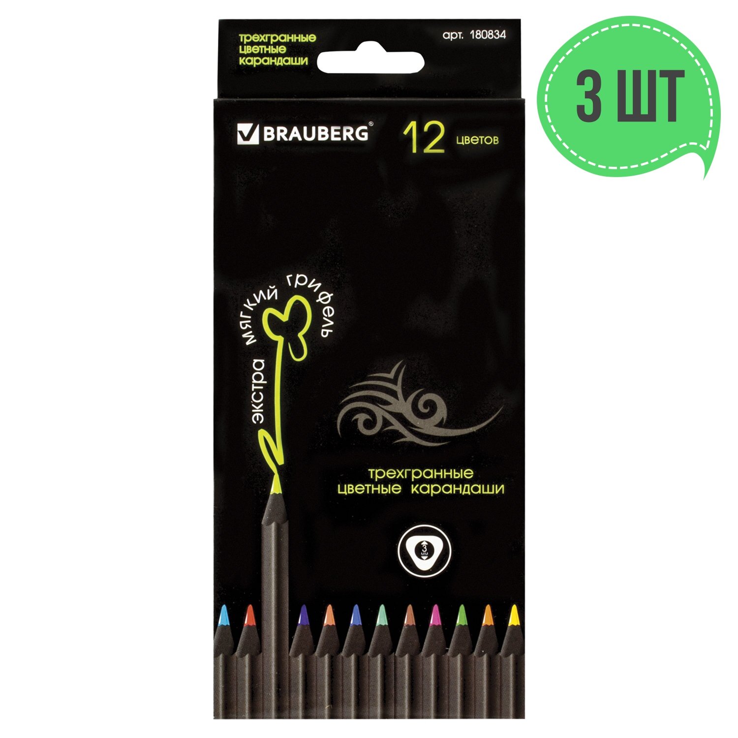 Ниже Вы можете прочитать отзывы на 3 упак, Карандаши цветные BRAUBERG "Black Jack", 12 цв, трехгранные, черное дерево, заточенные, картонная упаковка, 180834, ознакомится с подробными характеристиками, посмотреть интересные обзоры и фотографии на 3 упак, Карандаши цветные BRAUBERG "Black Jack", 12 цв, трехгранные, черное дерево, заточенные, картонная упаковка, 180834.