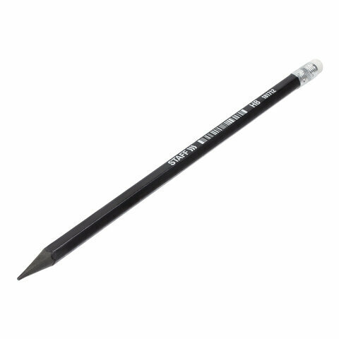 Карандаш чернографитный STAFF "College" BLP-712, 1 шт., НВ, с ластиком, пластик, корпус черный, 181712
