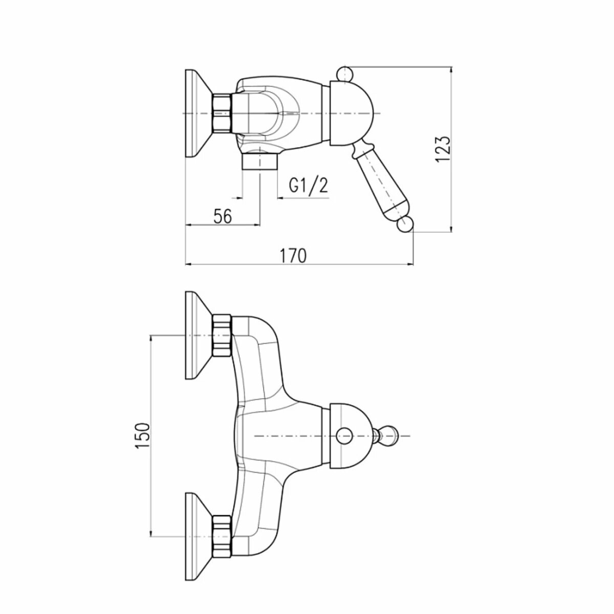 Смеситель на раковину настенный Эверест B46-350 с круглым поворотным изливом, кран-буксы 1/2", хром
