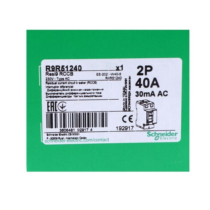 Ниже Вы можете прочитать отзывы на Выключатель дифференциального тока Schneider Electric Resi9 2П 40А 30мА тип AC, R9R51240, ознакомится с подробными характеристиками, посмотреть интересные обзоры и фотографии на Выключатель дифференциального тока Schneider Electric Resi9 2П 40А 30мА тип AC, R9R51240.