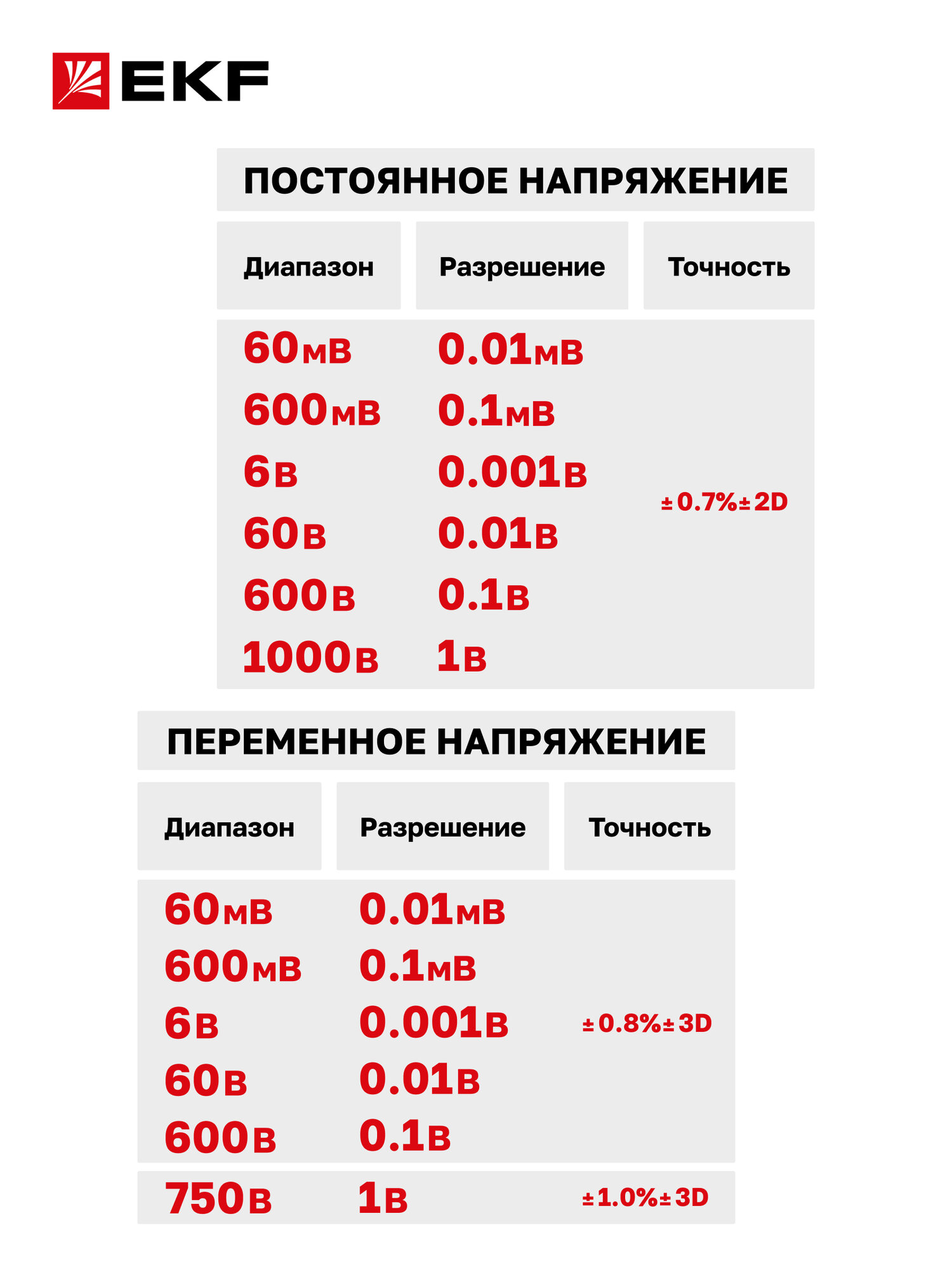 | Особенности | автоматический выбор диапазона измерений, подсветка дисплея, фиксация измерений |