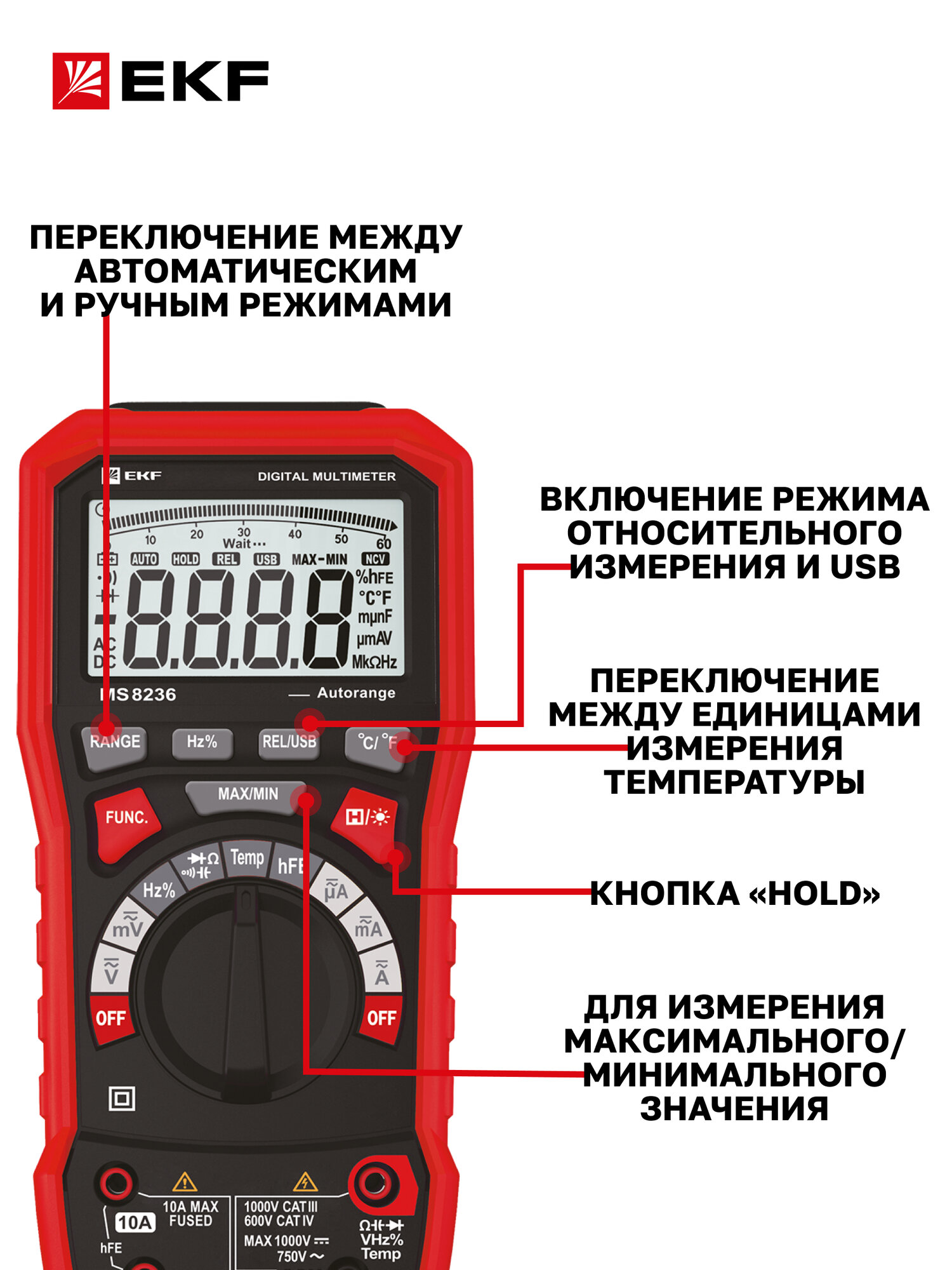 EKF Инструмент EKF In-180701-pm8236 Мультиметр цифровой MS8236 EKF Professional Красный