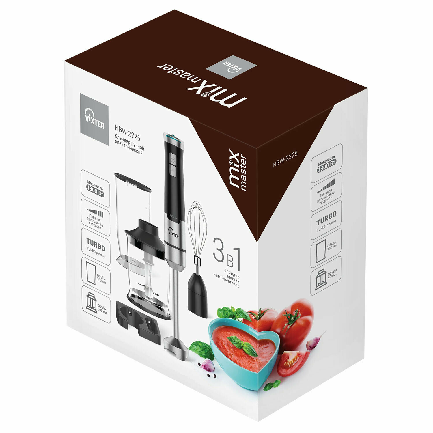 Блендер погружной 3 в 1 VIXTER HBW-2225, 1300 Вт, регулировка скорости, TURBO, 3 насадки, стакан черный